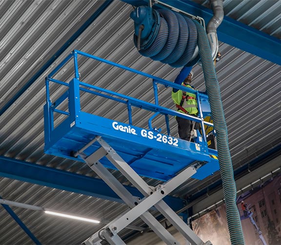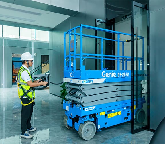 The Genie GS-2632 electric scissor lift is a compact, reliable solution for working safely at height in tight indoor and outdoor spaces. Its narrow design and zero inside turning radius make it easy to maneuver through congested areas like warehouses, maintenance corridors, and job sites. With a spacious platform and slide-out extension deck, operators can handle tools and materials more efficiently without constant repositioning.