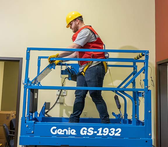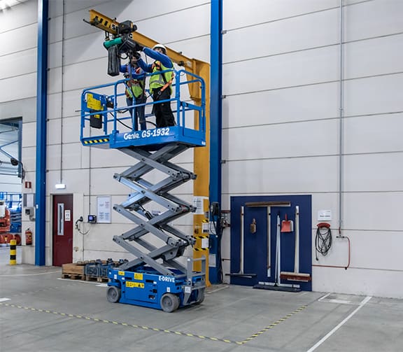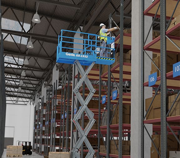 The Genie GS-1932 scissor lift is a compact, electric-powered solution built to help teams work safely and efficiently at height in tight indoor spaces. Its narrow design and tight turning radius make it easy to navigate crowded warehouses, manufacturing floors, and maintenance areas without disrupting operations.