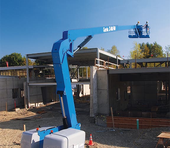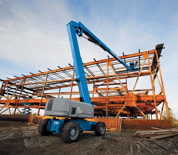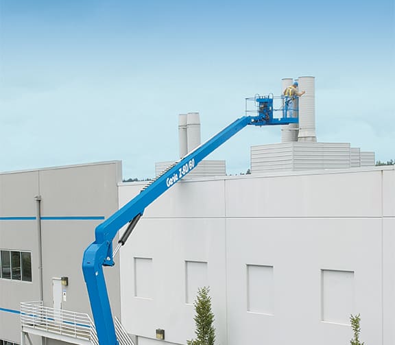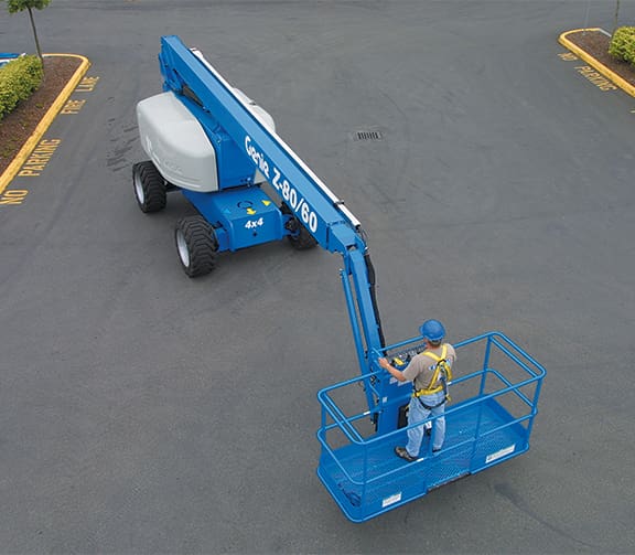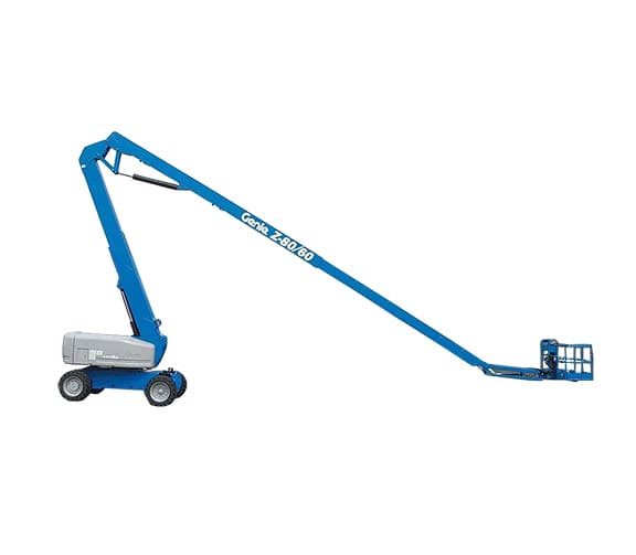 Ideal for outdoor construction and industrial applications the Genie Z-80/60 engine-powered articulating boom lift provides lifting versatility with a combination of up, out and over positioning capabilities and outreach that’s second to none.