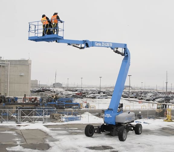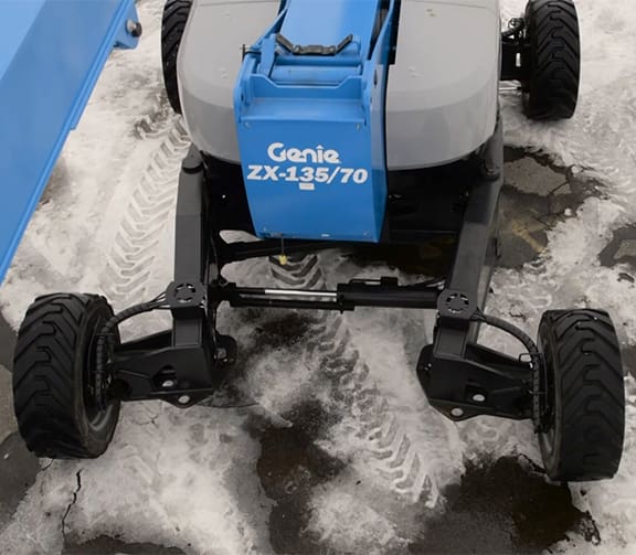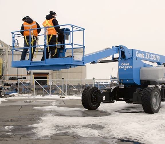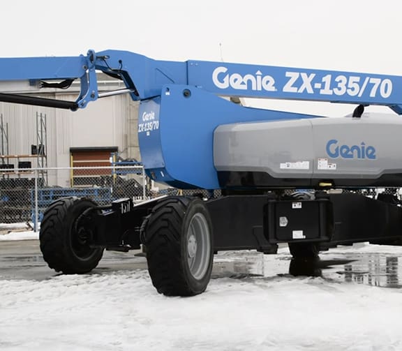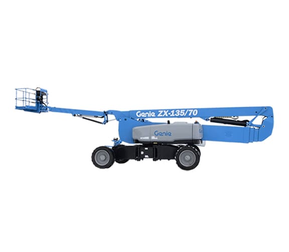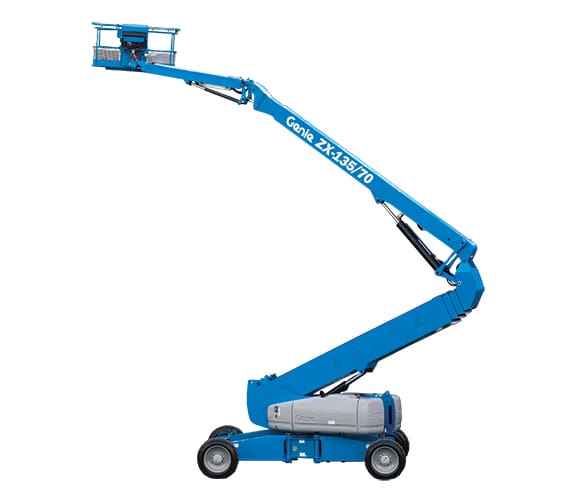 The Genie ZX-135/70 articulated boom lift delivers exceptional reach and versatility for demanding jobs at height, with a working height of up to 141 feet and impressive up-and-over clearance to access hard-to-reach areas. Its extendable jib, 360° rotation, and precise controls allow operators to position confidently around obstacles, improving productivity on complex job sites.
