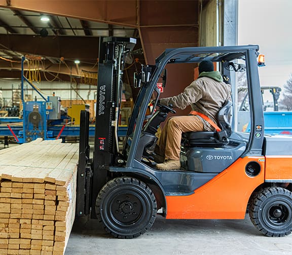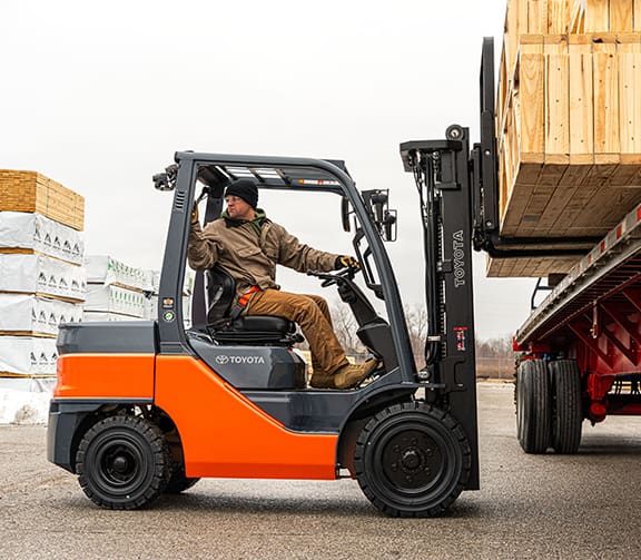 The Toyota Core Diesel Pneumatic forklift is built to handle demanding outdoor applications where power, durability, and traction matter most. With a lift capacity of up to 6,500 lbs., a fuel-efficient Kubota diesel engine, and pneumatic tires, it delivers reliable performance across uneven terrain like lumber yards and construction sites. Operators benefit from features like the System of Active Stability (SAS), automatic fork leveling, and an intuitive LCD display that provides real-time performance data.