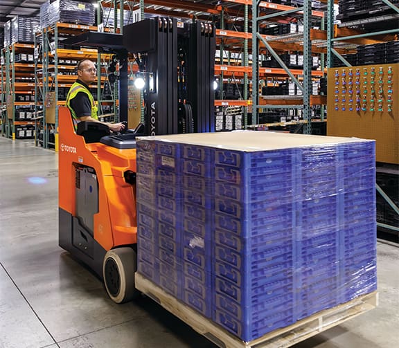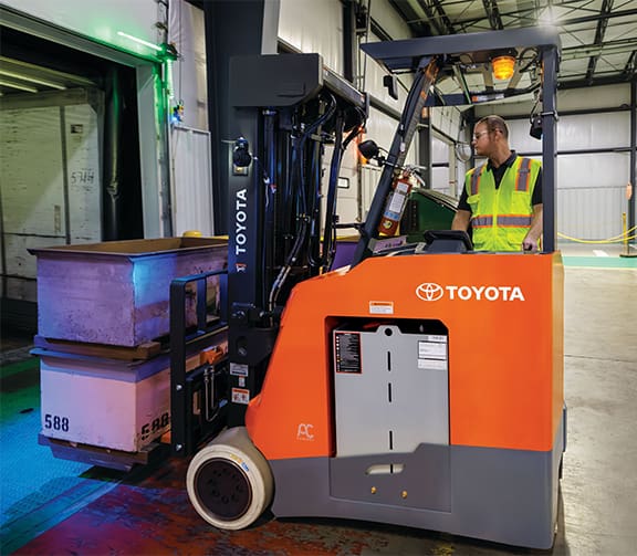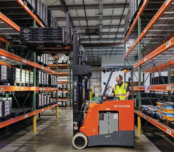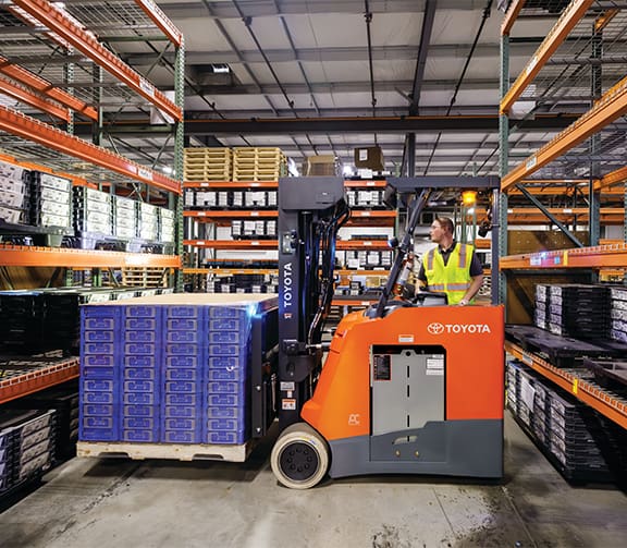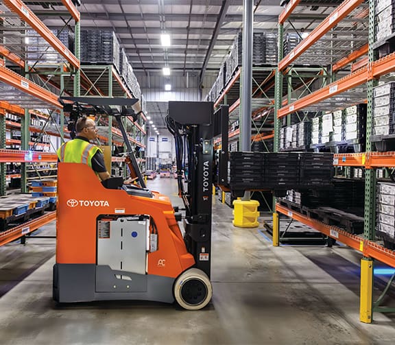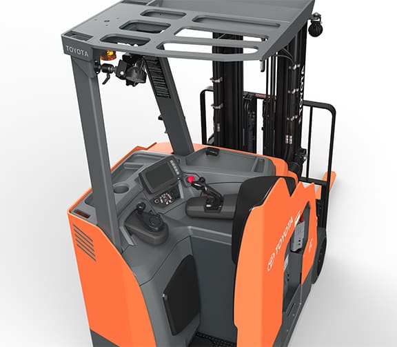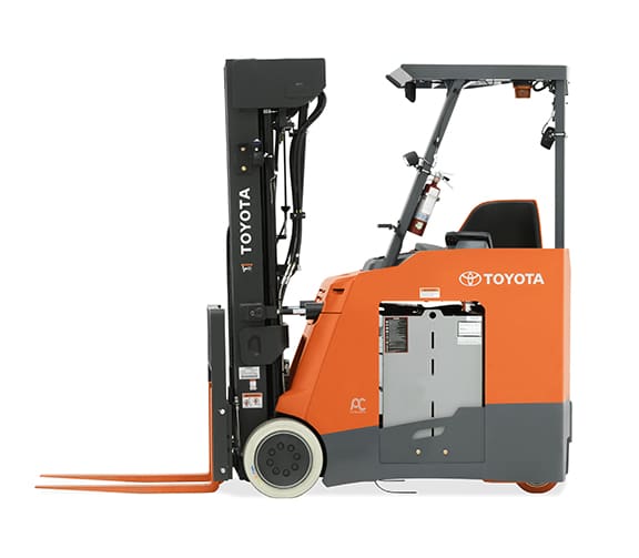 The Toyota stand-up rider forklift is built to maximize productivity in tight warehouse environments where space and speed matter most. Its compact design, responsive electric steering, and intuitive controls allow operators to move efficiently through narrow aisles while maintaining precise load handling.