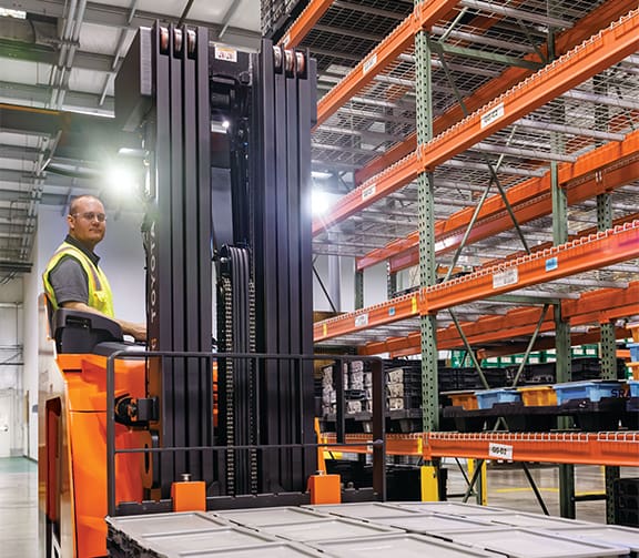 Designed with operator comfort in mind, it features a spacious compartment, cushioned flooring, and ergonomic controls to reduce fatigue over long shifts. Advanced safety and performance features like regenerative braking, load stability systems, and customizable performance settings help keep operations running smoothly and reliably. As a dealer, we can help you configure the right setup for your facility and application.
